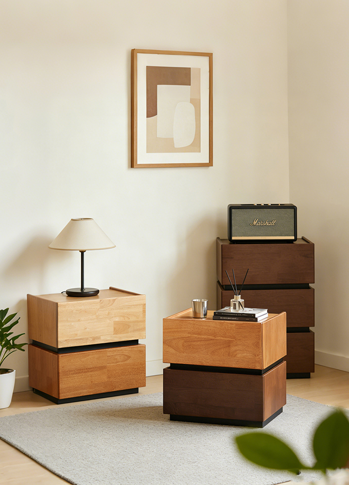 錦木の家具は主に天然木素材を使用しています。商品によって使用している素材が異なりますので、詳細は商品ページをご確認ください。